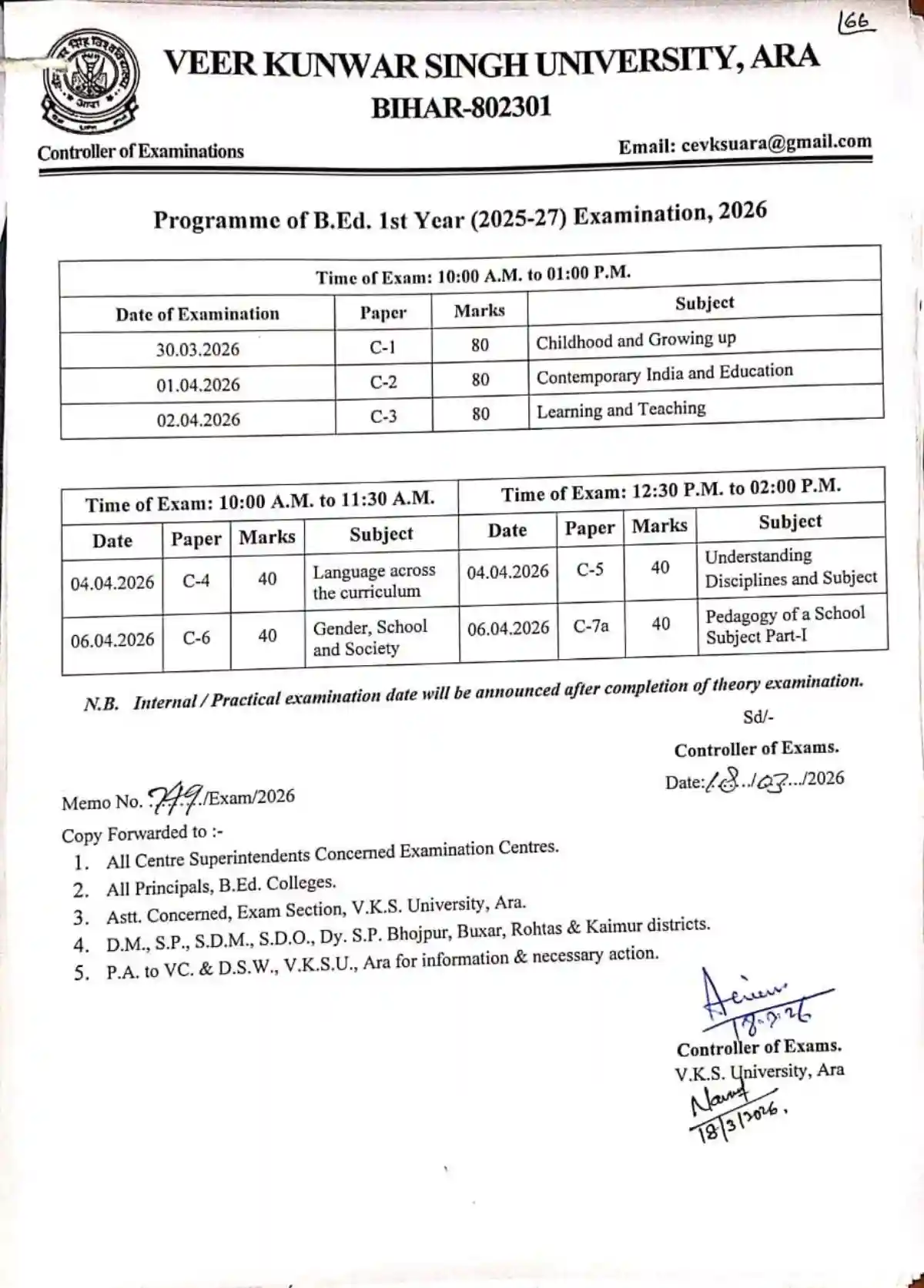 VKSU B.Ed 1st Year Exam Schedule 2026