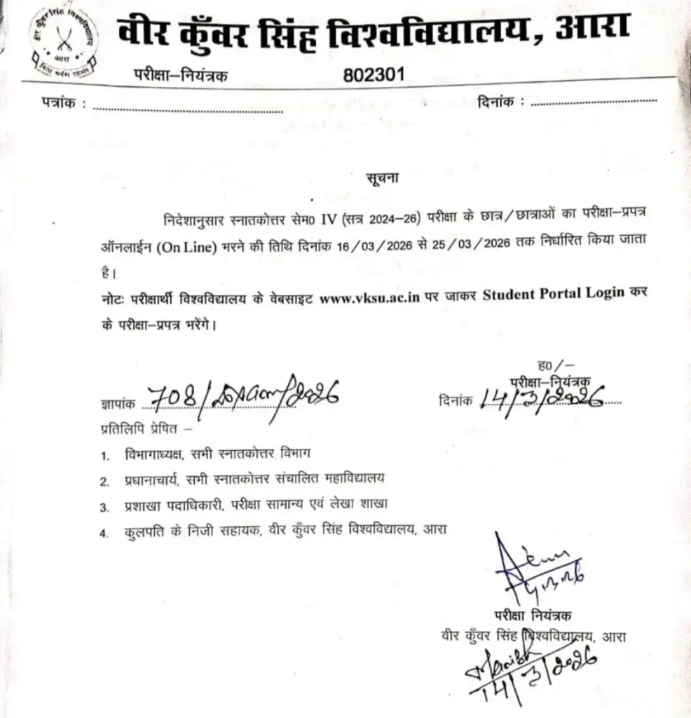 VKSU PG Semester 4 Exam Form 2024-26 : परीक्षा फॉर्म भरना शुरू, यहाँ देखें Direct Link और पूरी Details